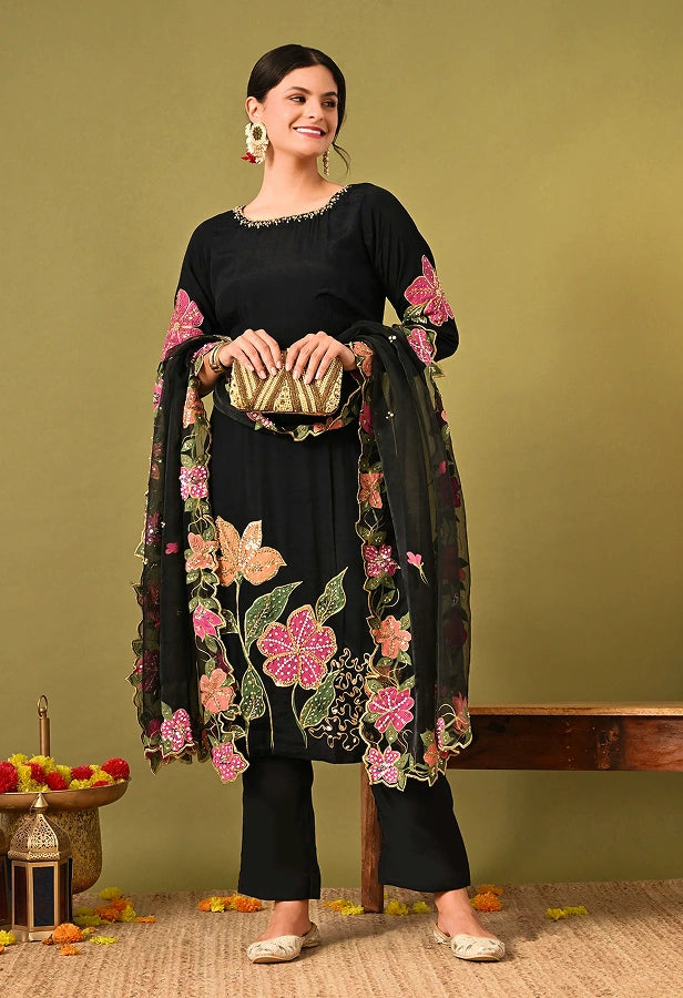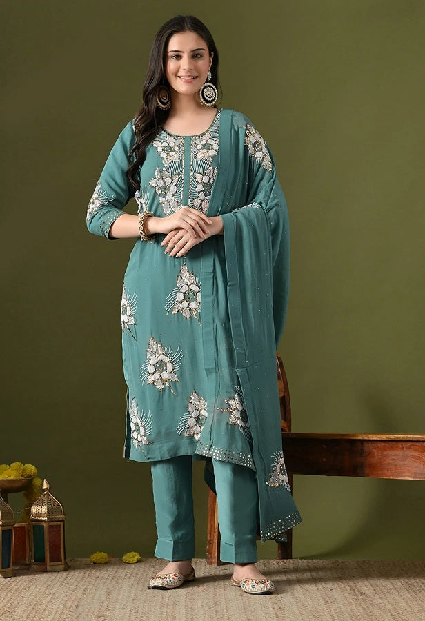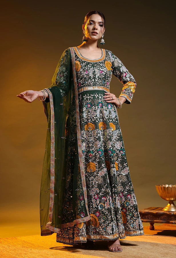 Beauitful Green Kurta Set with Gota Patti, Zardozi, Dabka, Mirror, and Applique Work