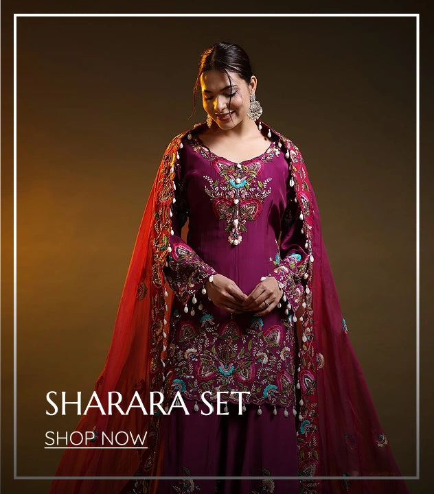 Wine Glass Silk Zardozi–Sequin Sharara Set