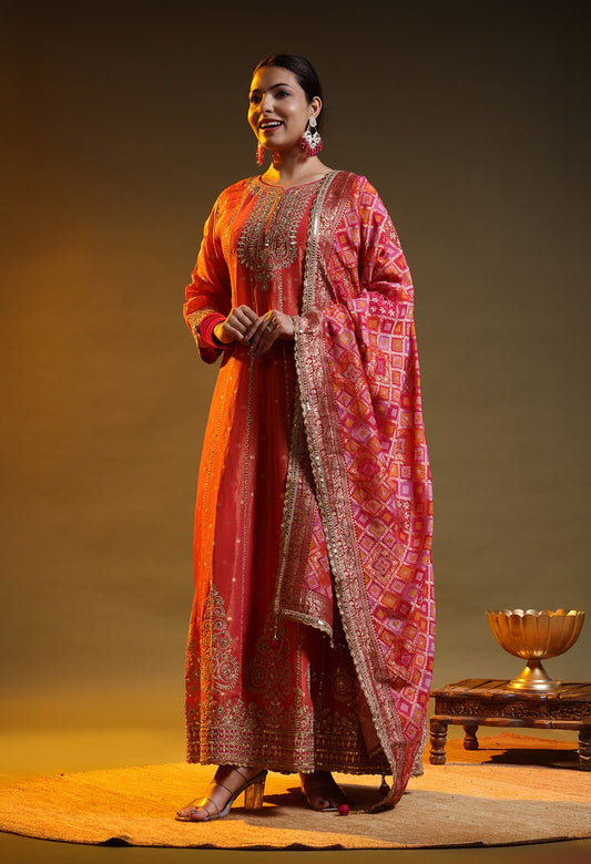 Orange Tissue Silk & Organza Gotta–Applique–Zardozi Anarkali Set