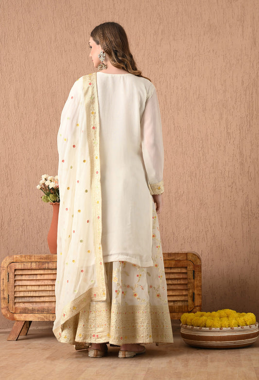 Beautiful Cream Gharara Set with Banarasi, Zari, and Crsytal Work