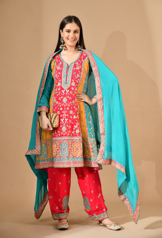Pink Chinon Kurta Set with Zardozi & Sequin Embroidery