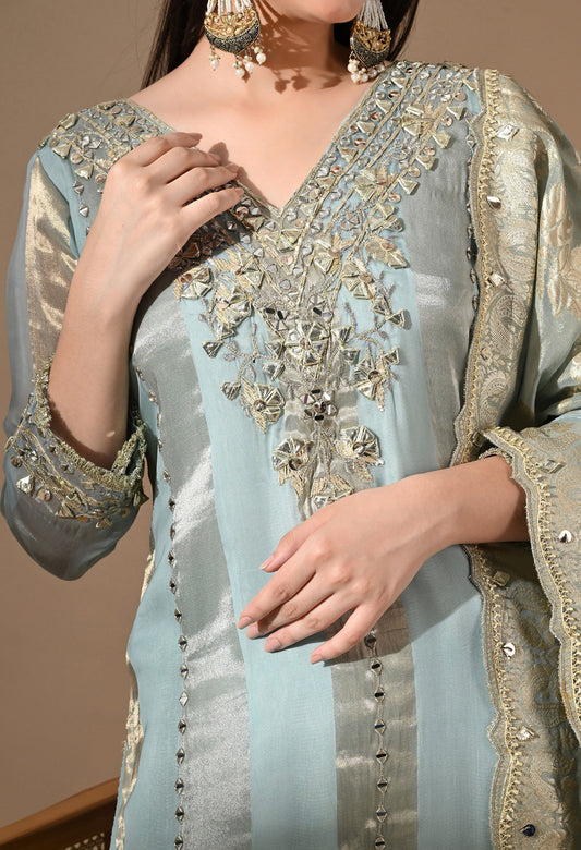 Fascinating Blue Sharara Set with Gotta & Mirror Work