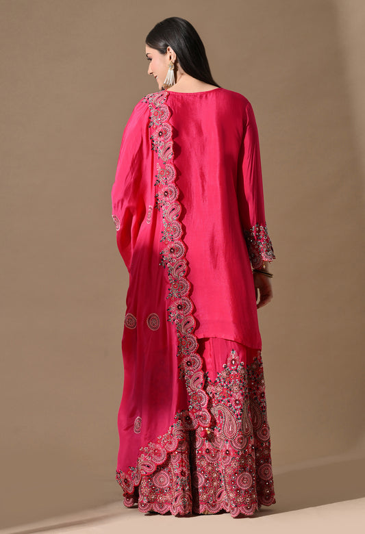 Hot Pink Sharara Set with Mirror & Pearl Work