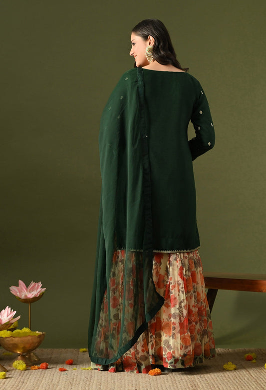Green Sharara Set with Gotta, Zardozi, Applique & Mirror Work.
