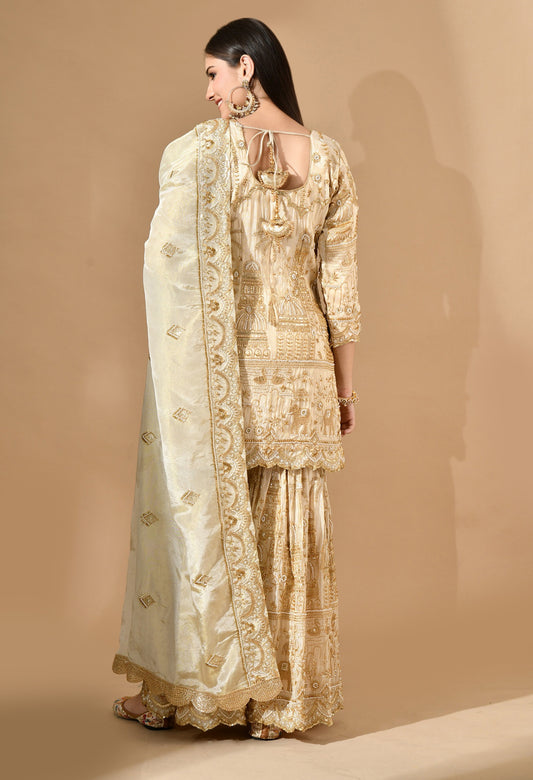 Golden Gharara Set with Zardozi, Pearl & Cutdana Work