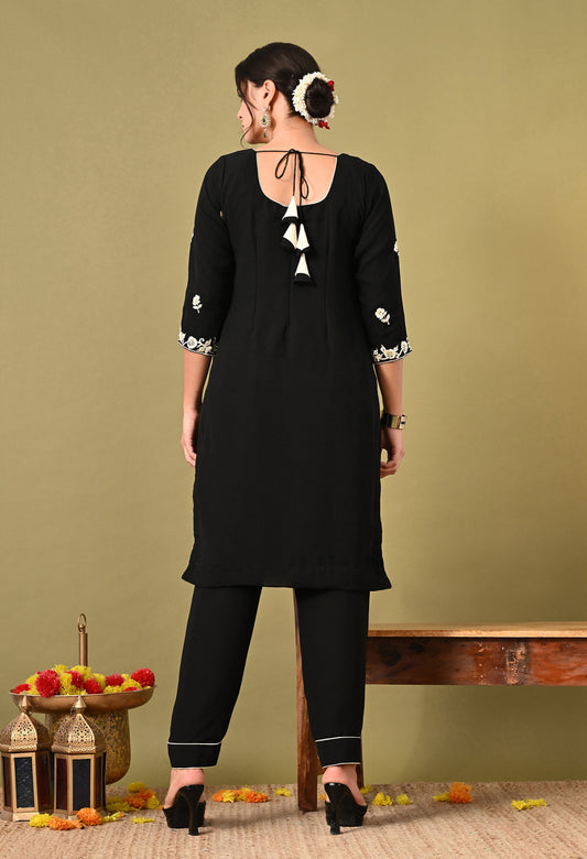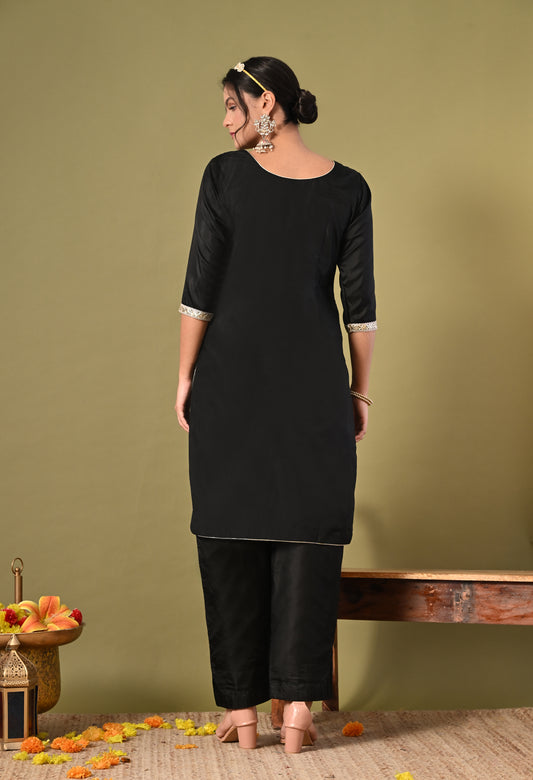 Chic Black Kurta Set with Elegant Zardozi Embroidery