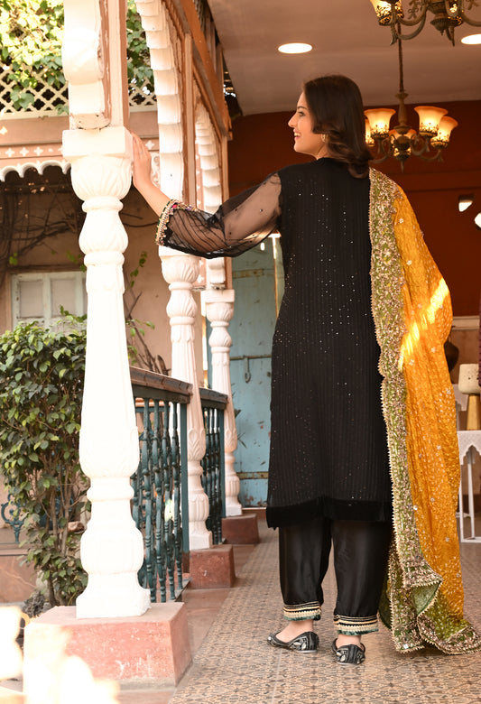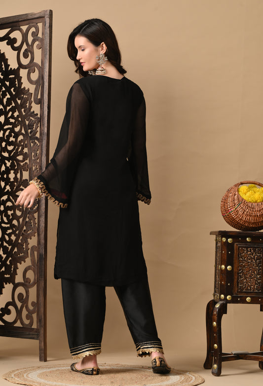 Black Georgette Kurta Set with Zardozi & Gotta Embroidery