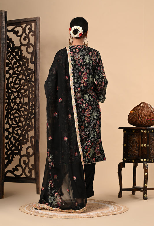 Graceful Black Kurta Set with Mesmerising Parsi Work