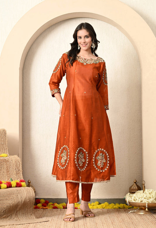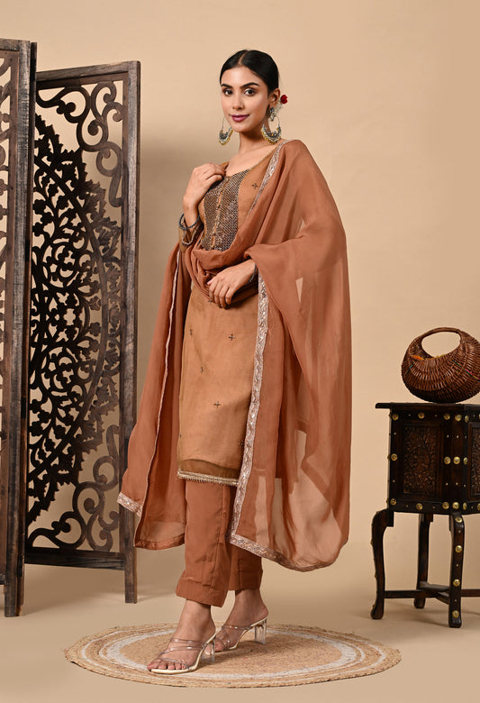 Chocolate Brown Kurta Set with Beautiful Zardozi, Tilla, and Sequin Work