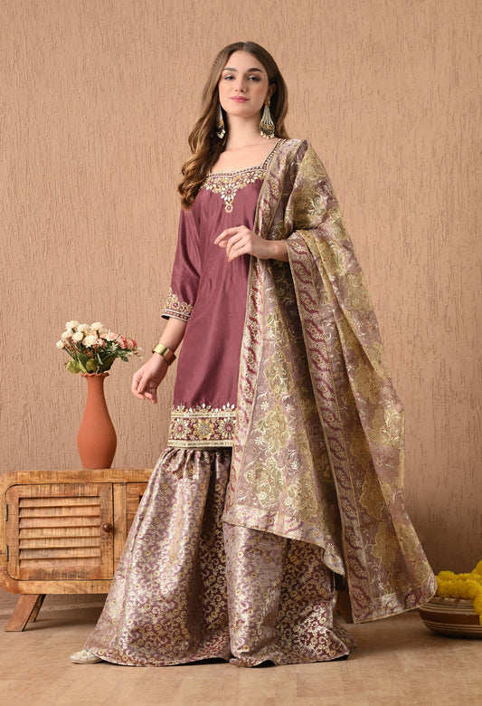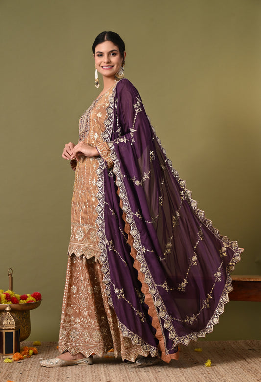 Beautiful Light Brown Sharara Set with Gotta, Zardozi, and Pearl Work