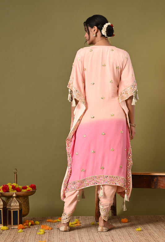 Stylish Pink Kaftan Set with Gotta, Zardozi, and Mirror Work