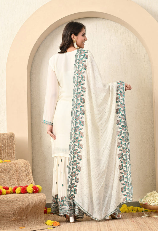 Off White Cream Gharara Set with Elegant Thread and Crystal Work