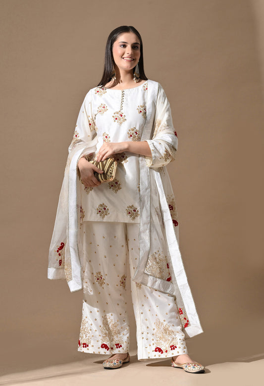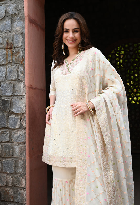 Cream Sharara Set with Banarsi Georgette Dupatta