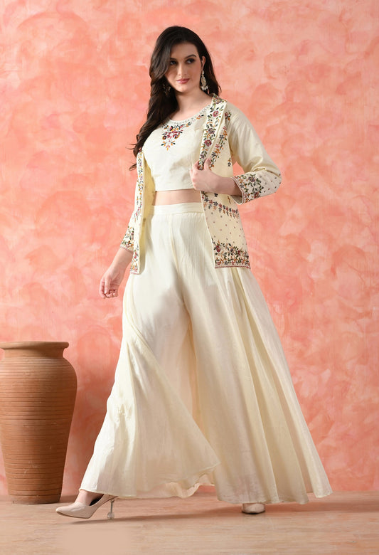 Cream Co-ord set with Beautiful Highlights of Thread and Sequence Work