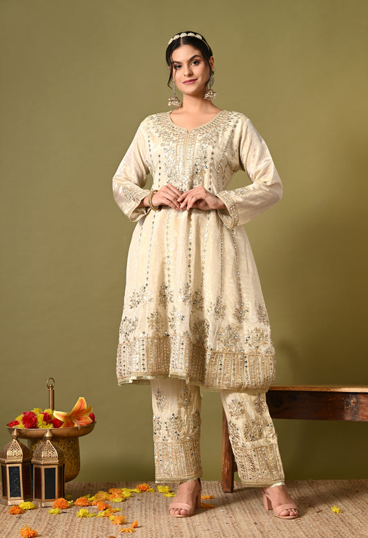 Special Cream Kurta Set with Gotta and Zardozi Work