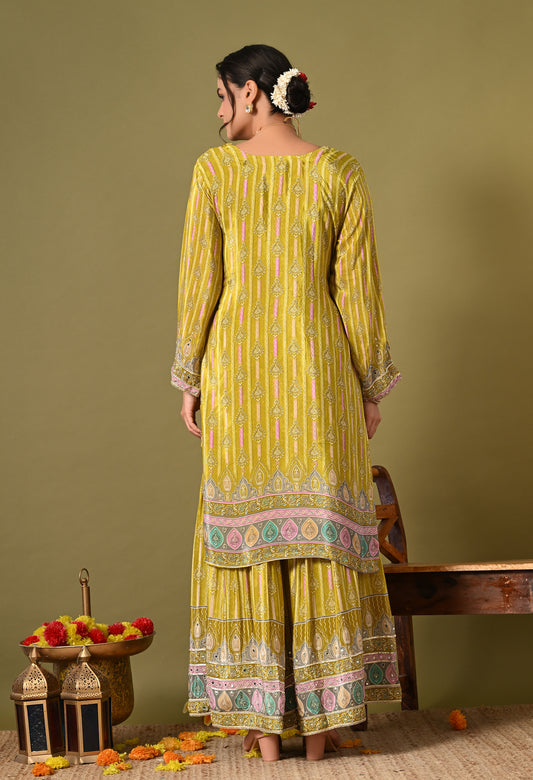 Mesmerising Green Sharara Set with Zardozi and Mirror Work