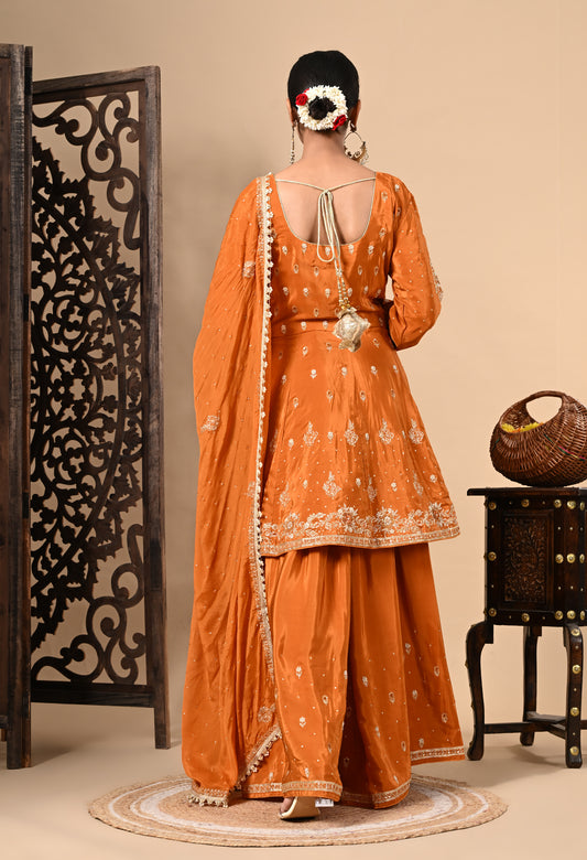 Excellent Orange Gharara Set with Gotta and Zardozi Work
