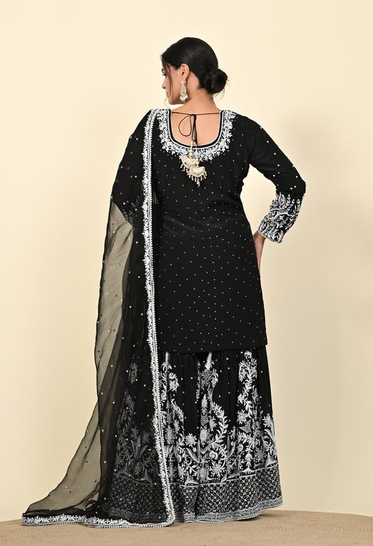 Sophisticated Black Sharara Set with Thread and Sequin Embroidery