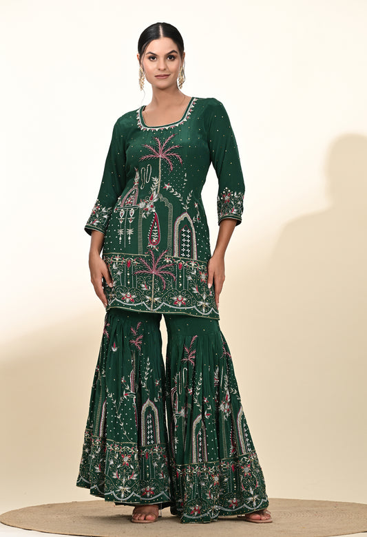 Royal Bottle Green Sharara Set with Exquisite Zardozi Embroidery