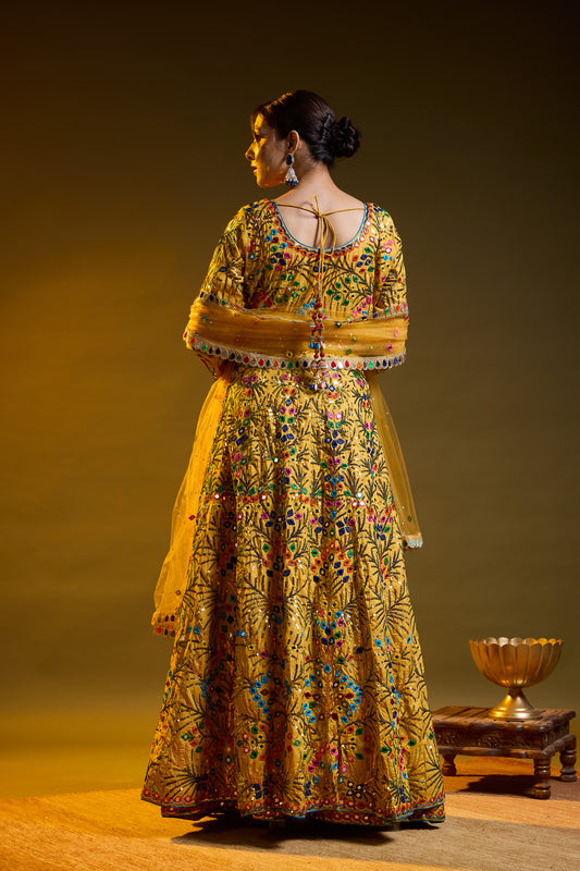 Yellow Lehnga ( With Jacket ) embroided with Thread, Mirror, and Sequence Work