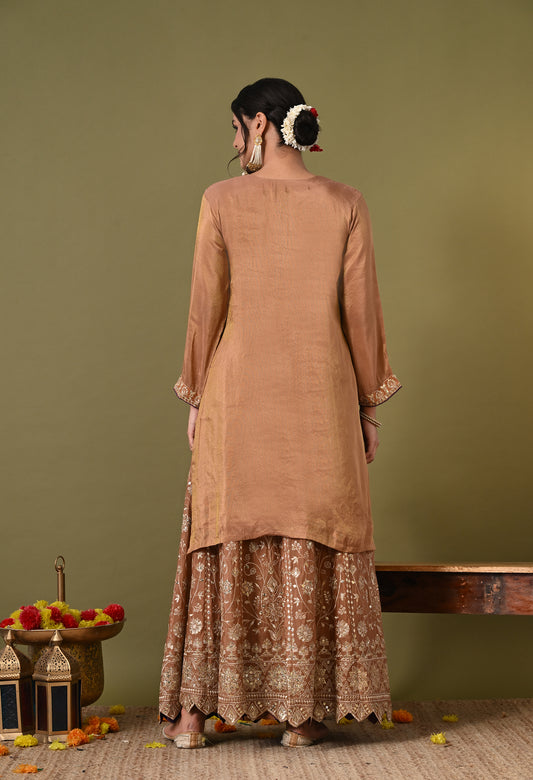 Exquisite Light Brown Lehenga Set with Excellent Zardozi and Sequence Work