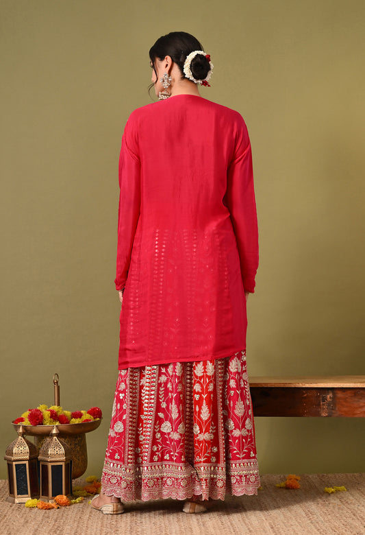 Elegant Red Lehenga Set with Zardozi, Dabka, Sequence, and Pearl Work