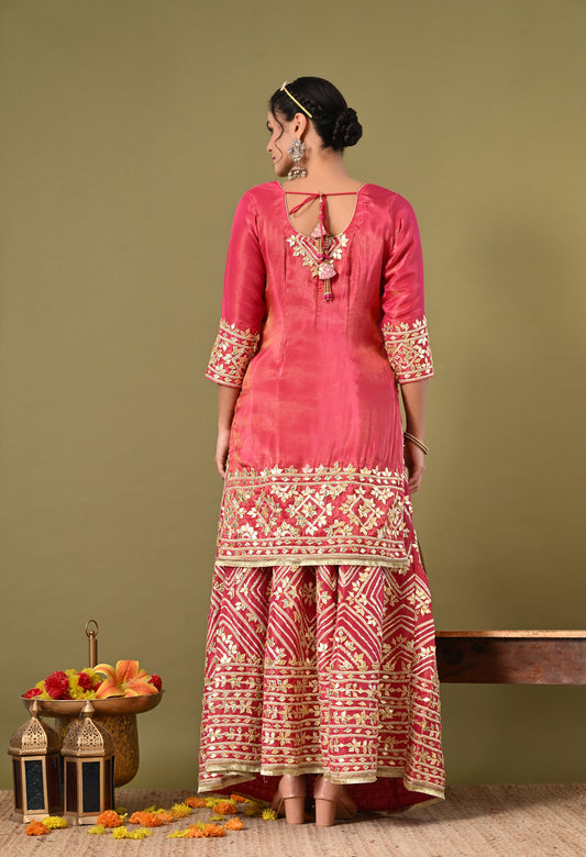 Graceful Pink Lehenga Set with Gotta and Zardozi Work