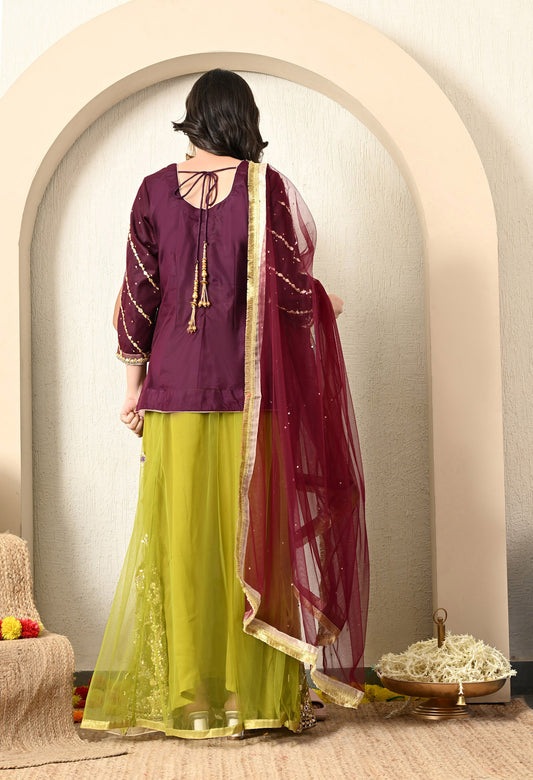 Dark Wine Lehnga Set with Gotta, Thread, Zardozi, and Zari Work
