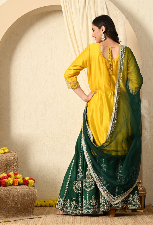 Green and Yellow Lehenga Set with Exquisite Sequence Work