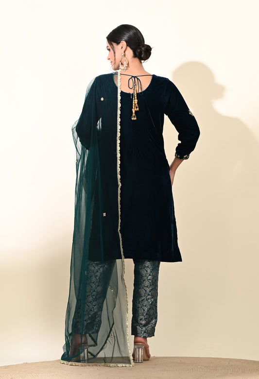 Striking Blue Kurta Set with Sophisticated Zardozi Embroidery