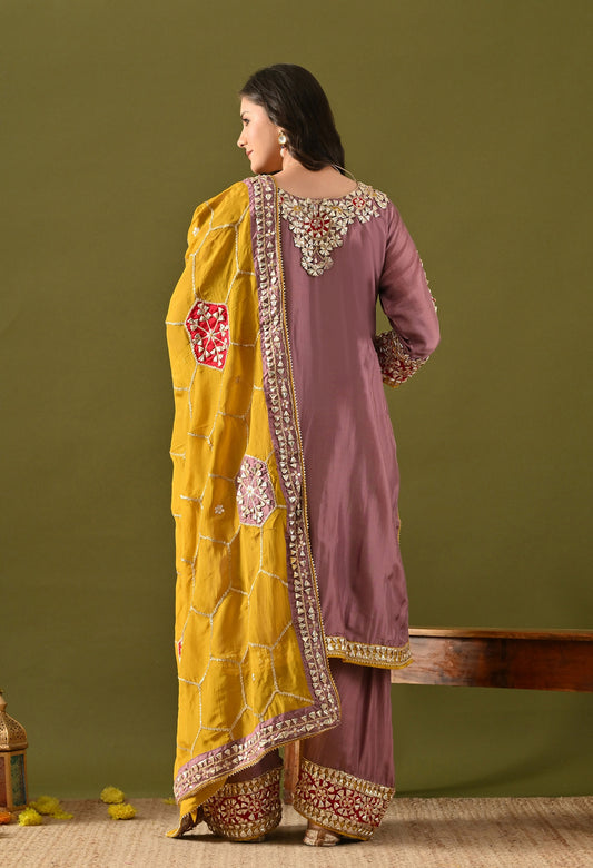 Purple Tissue Silk & Organza Gotta–Applique Kurta Set