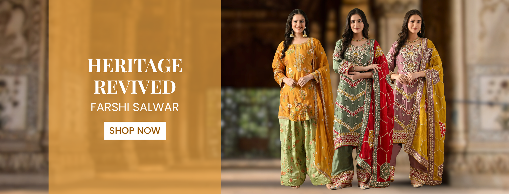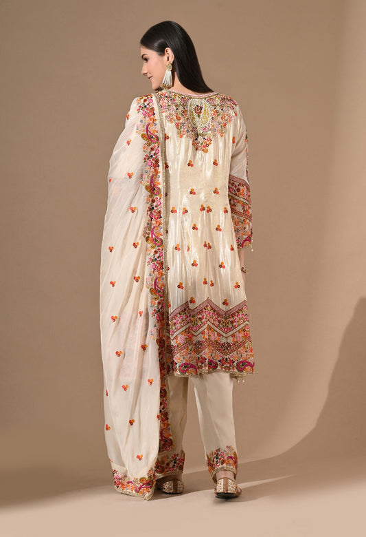 Golden Cream Kurta Set with Farshi Salwar & Zardozi Work