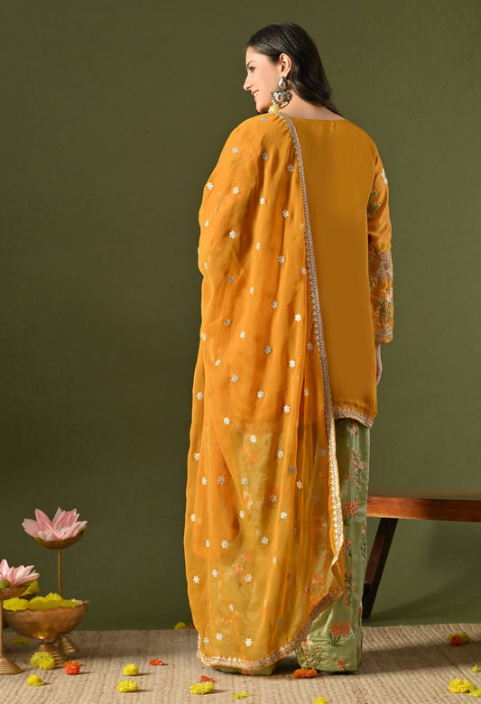 Green Tissue Silk & Organza Gotta–Applique Kurta Set