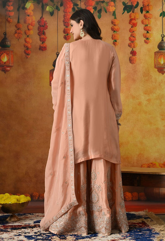 Peach Sharara Set with Zardozi, Sequin & Pearl Work.