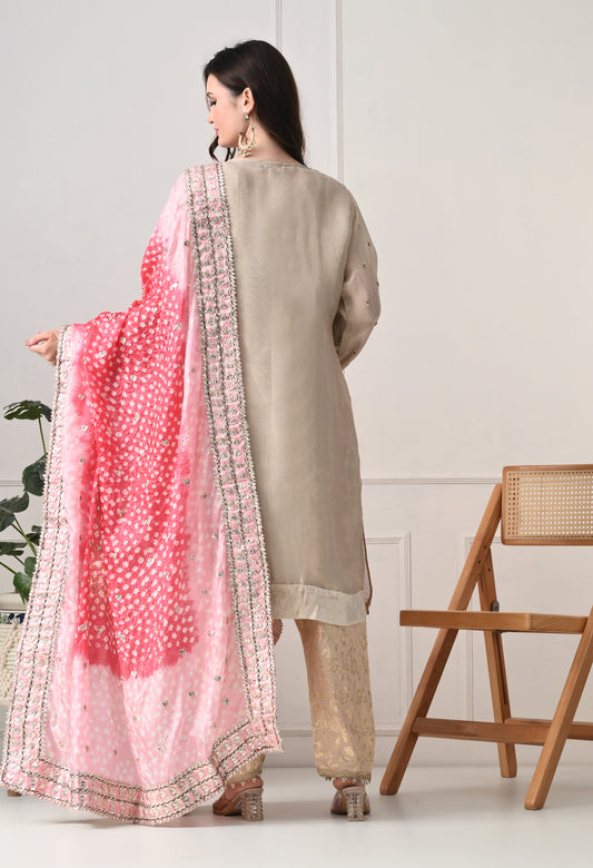 Greenish Grey Tissue Silk & Organza Gotta–Applique–Mirror–Zardozi Sharara Set
