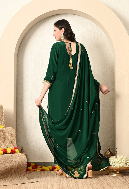 Bottle Green Kurta Set with Zardozi, Applique, and Sequence Work
