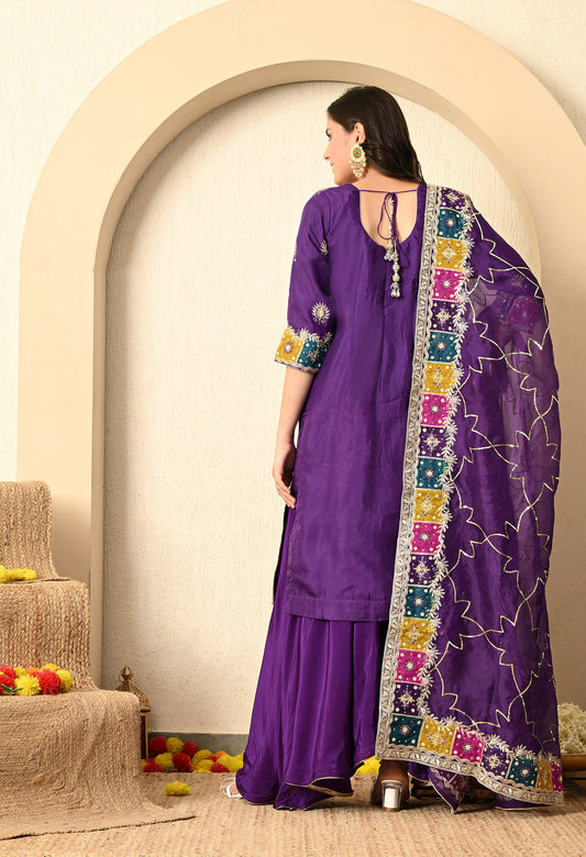 Bright Purple Kurta Set with Zardozi, Sequence, Cutdana, and Naqshi Work
