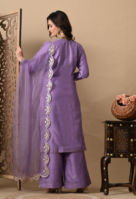 Elegant Orchid Purple Silk Kurta Set, Embellished with Exquisite Zardozi and Gotta Embroidery