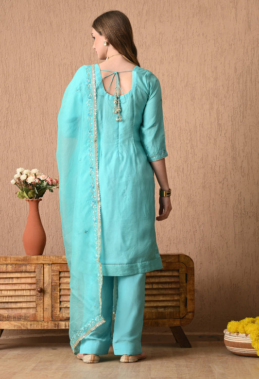 Delicate Baby Blue Organza Kurta Set with Thread, Sequin, and Dabka Embroidery