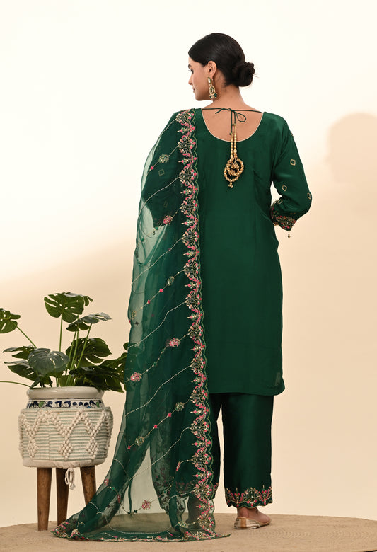 Luxurious Dark Green Crepe Kurta Set with Exquisite Zardozi Embroidery