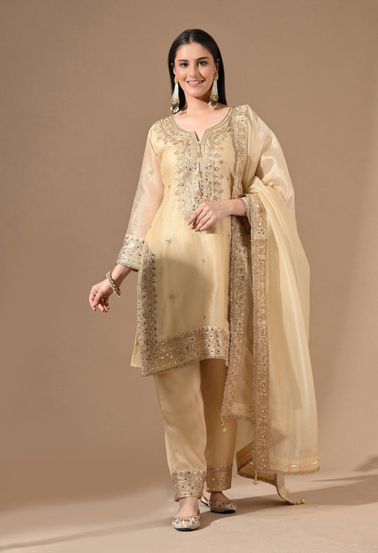 Gleaming Golden Kurta Set with Zardozi and Sequin Embroidery
