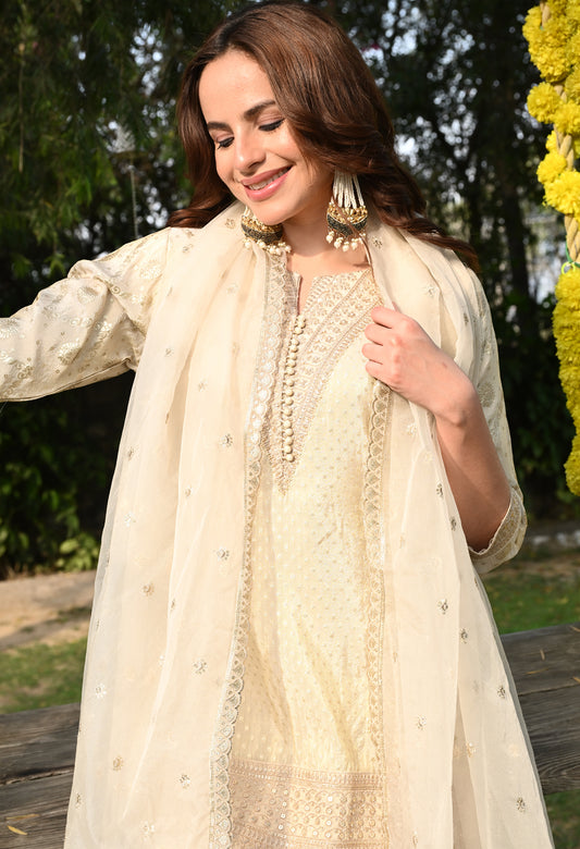 Golden Tissue Sharara Set with Pearl and Cutdana Work