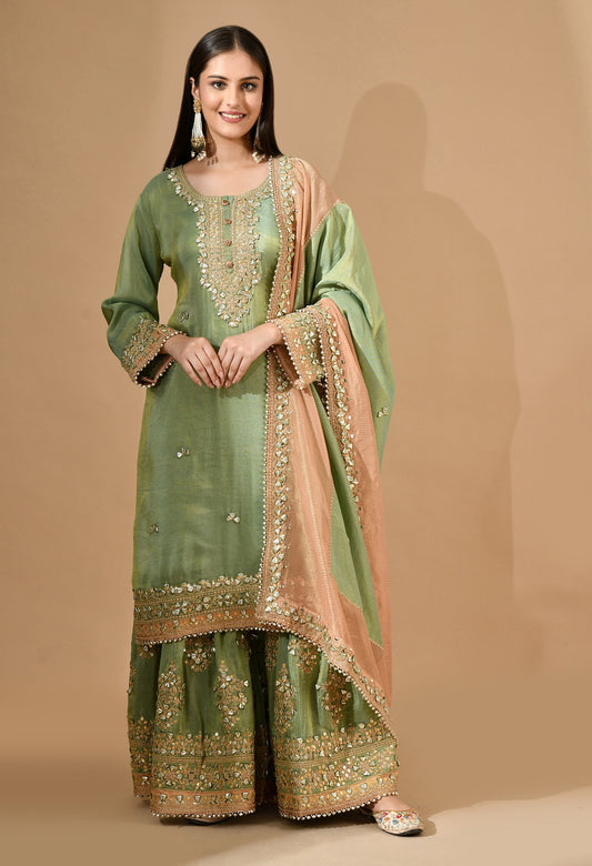Light Green Sharara Set with Gotta & Zardozi Embroidery