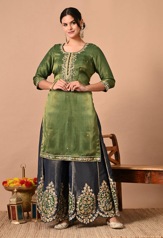 Exquisite Green Sharara Set with Zardozi, Dabka, Cutdana, and Gotta Work