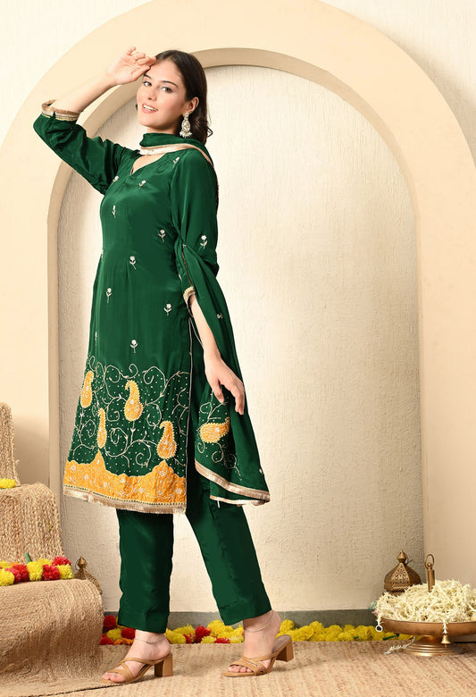 Bottle Green Kurta Set with Zardozi, Applique, and Sequence Work