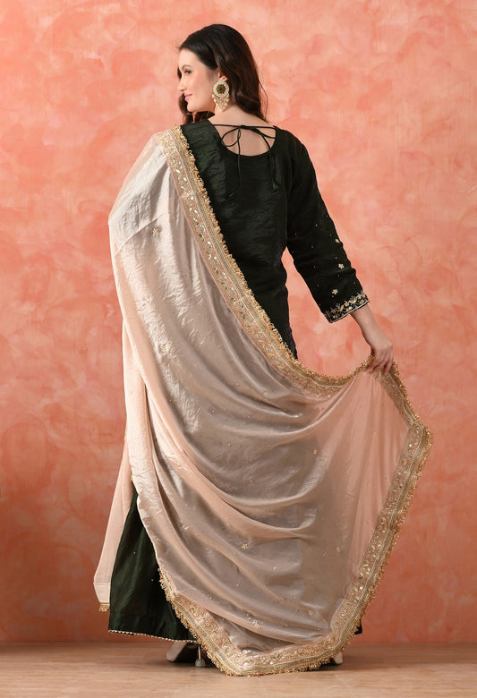 Bottle Green Kurta Set with Zardozi, Dabka, Sequin, Thread, and Pearl Work