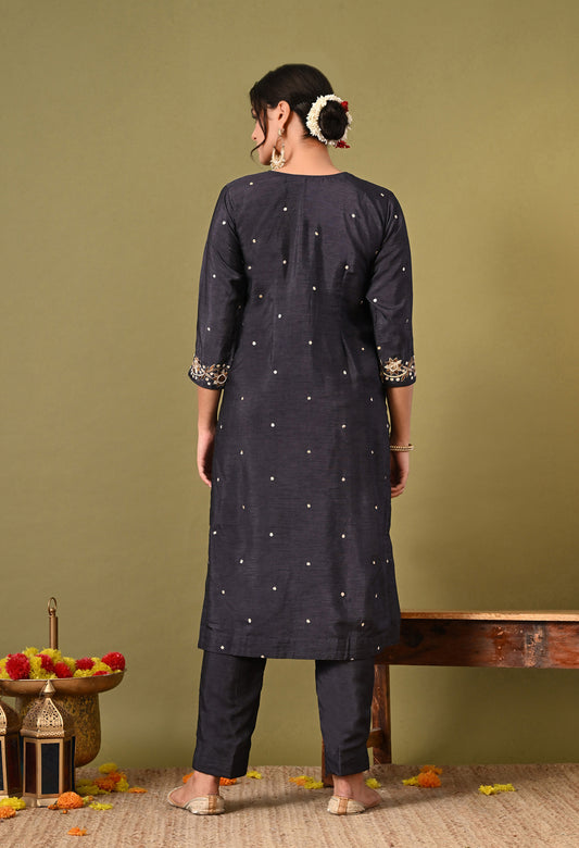 Dark Grey Kurta Set with Thread, Dabka, and Pearl Work
