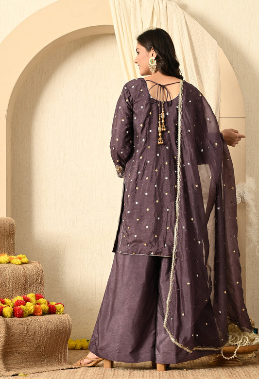 Purplish Grey Kurta Set with Mukaish, Zardozi and Sequence Work