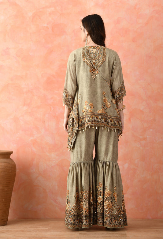 Stylish Pink Kaftan Set with Gotta, Zardozi, and Mirror Work