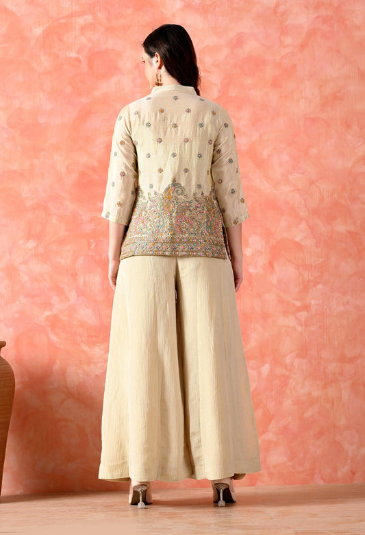 Cream Co-ord set with Beautiful Highlights of Thread and Sequence Work